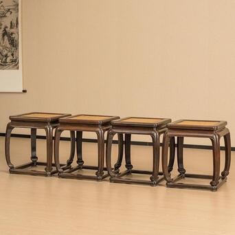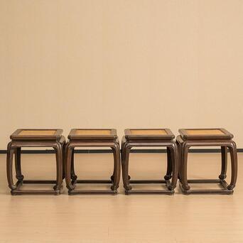 本组家具由四只方凳组成,方凳是明式家具中使用率极高的制式,因其结构简明、移动灵活,且具有悠久的历史渊源,可追溯到东汉末年,少数民族来到中原后,其所使用的高型坐具逐渐融入到了中原的生活之中,随后发展成为上至王公贵族,下至普通百姓等人家必备之器,在明式家具收藏中具有不可撼动的地位。