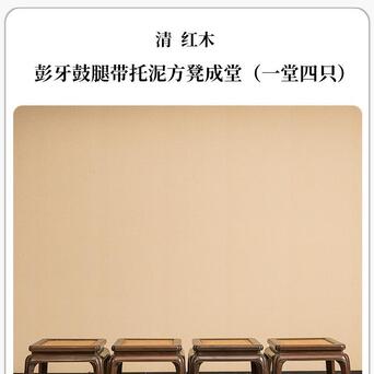 清 红木彭牙鼓腿带拖泥方凳成堂(一堂四只)